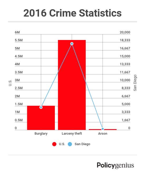 You don’t want to be on the hook for the cost of your stuff if it’s destroyed or stolen. Renters insurance can help replace those items. In San Diego, there were 4,743 burglaries in 2016, along with 18,042 thefts and 239 cases of arson, according to the FBI’s Crime Data Explorer.†